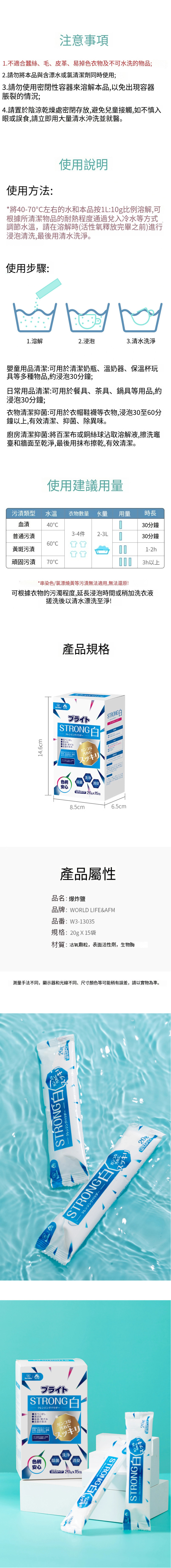 WORLD LIFE--爆炸鹽洗衣去污漬嬰幼兒彩漂粉【漂白劑】20gX15袋