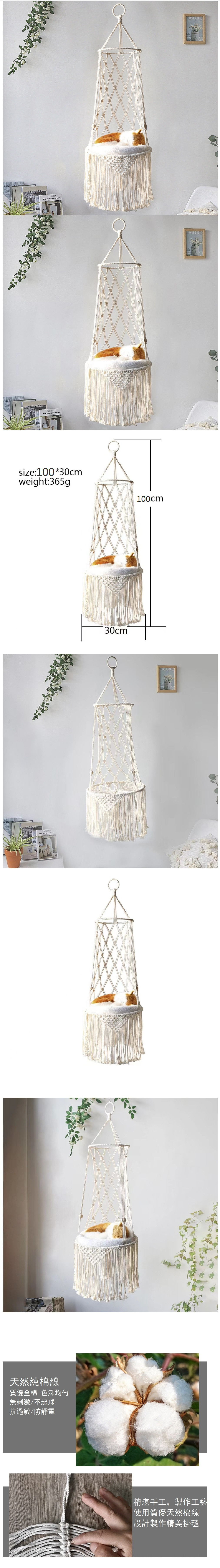 激抵編織貓吊籃吊床懸掛貓窩含墊子(白色 30*100)