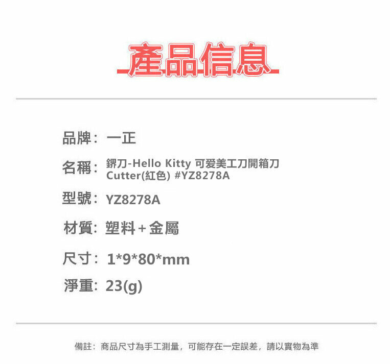 激抵鎅刀-Hello Kitty 可愛美工刀開箱刀 Cutter(紅色)