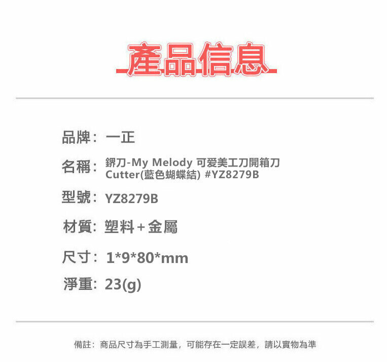激抵鎅刀-My Melody 可愛美工刀開箱刀 Cutter(藍色蝴蝶結)