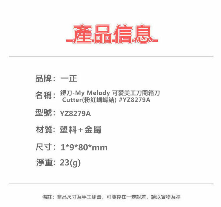 激抵鎅刀-My Melody 可愛美工刀開箱刀 Cutter(粉紅蝴蝶結)