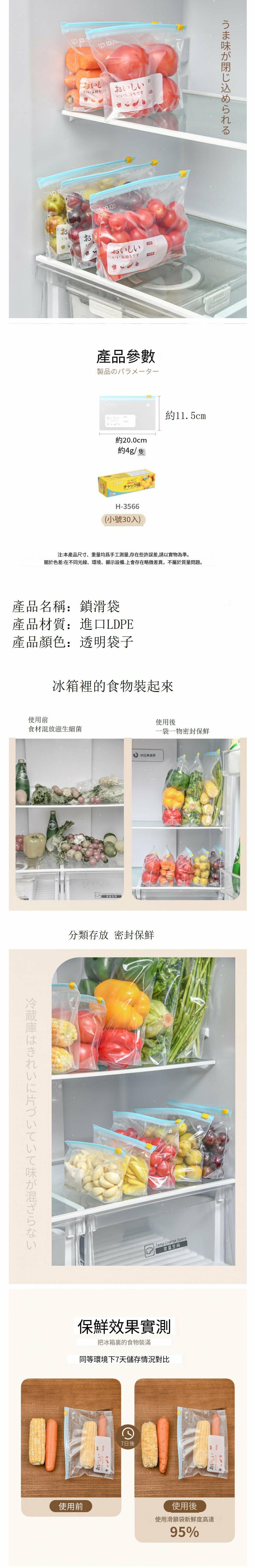 熱賣拉鍊密實袋【尺寸小號20*11.5cm【30個】】食物保鮮袋 拉鏈式食物袋 保鮮密實袋 加厚可冷凍食物收納袋 雪櫃冷凍分裝收納袋