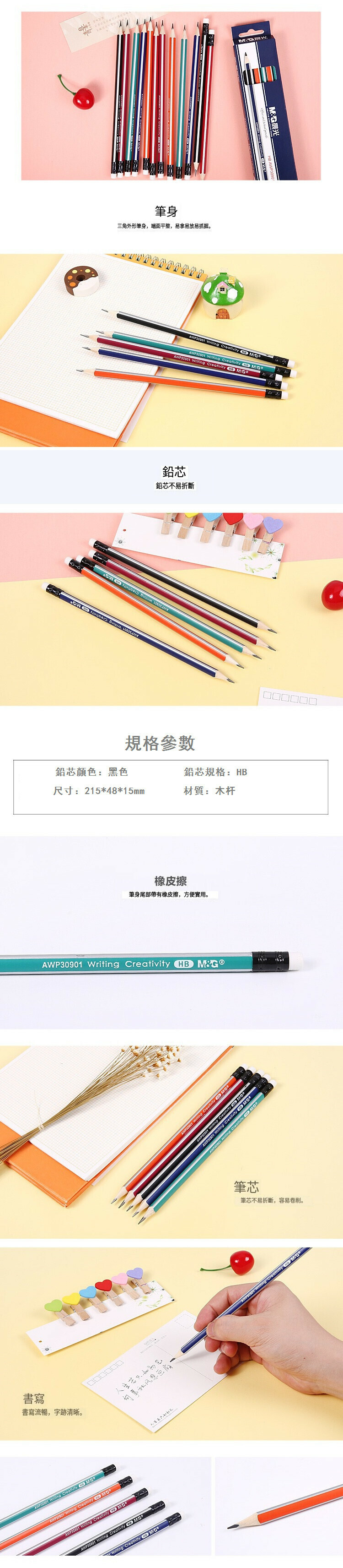 熱賣【1支裝】30901三角彩杆HB鉛筆自帶橡皮(顏色隨機)