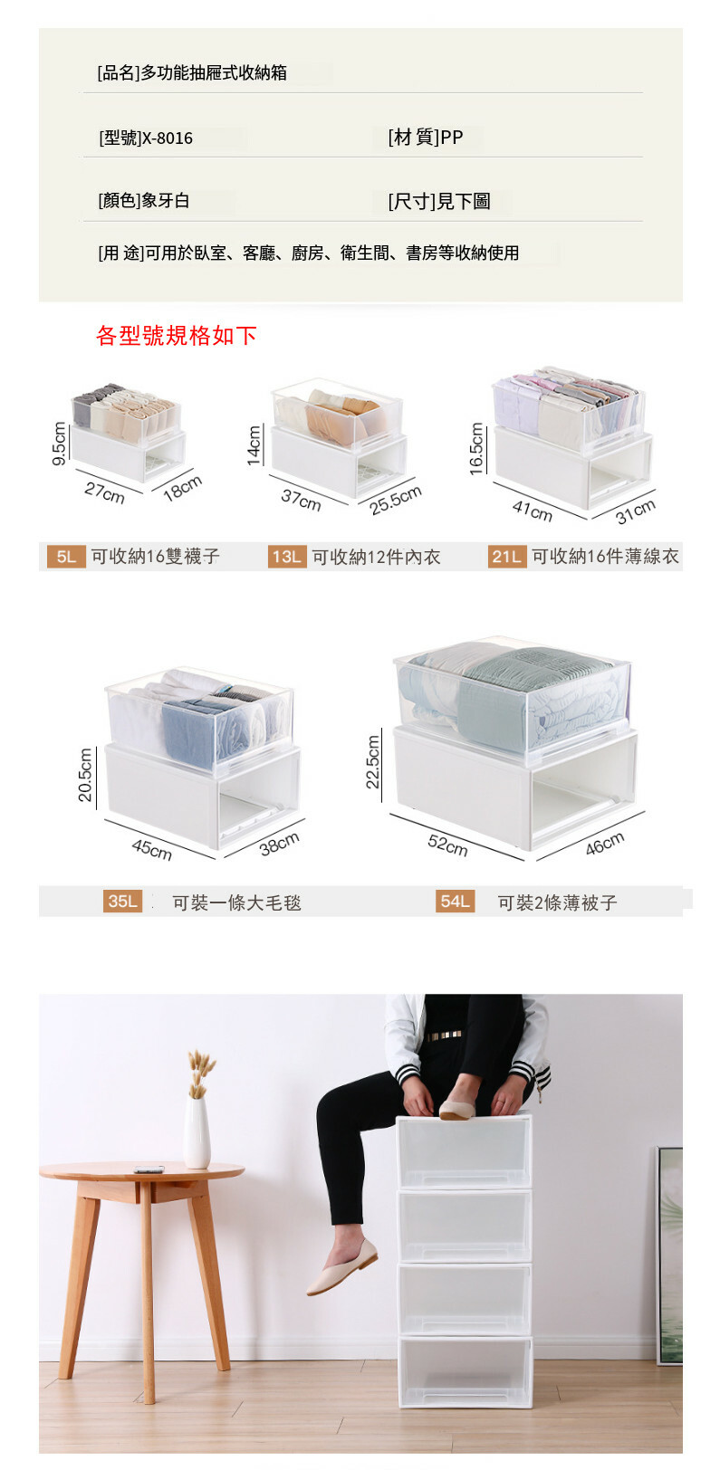 熱賣【1個裝】日式可疊加收納櫃桶 儲物抽屜盒 塑膠抽屜盒 衣物整理箱【21L】