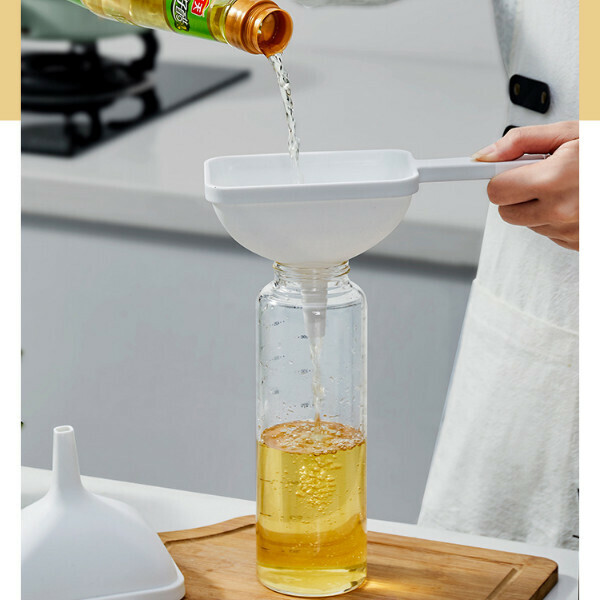 熱推【1個裝】塑膠加油壺 分裝神器 過濾倒醬油 打酒器酒漏鬥(白色-長柄手持漏鬥)