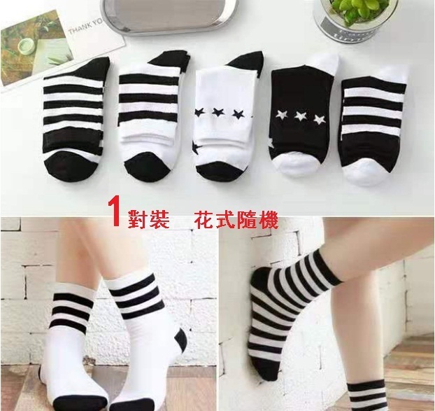 爆款【1對裝 均碼】秋冬季學院風襪【中筒襪 黑白星星 花色隨機】
