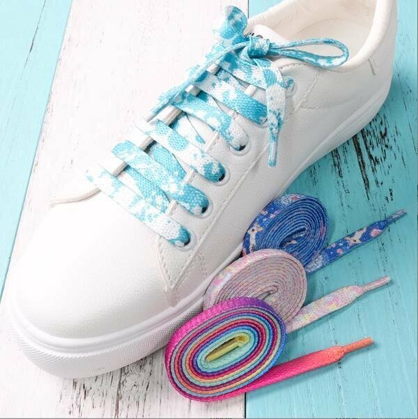 新款【1對】熱轉印漸變色扁平鞋帶(120CM)【藍色】