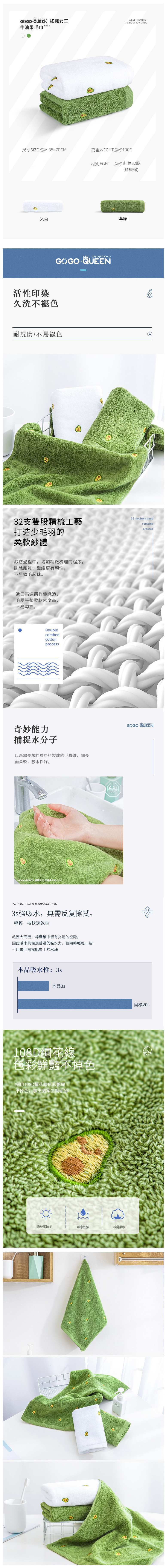 新款【1件】超柔吸水純棉毛巾(牛油果毛巾(綠) 35*75cm)