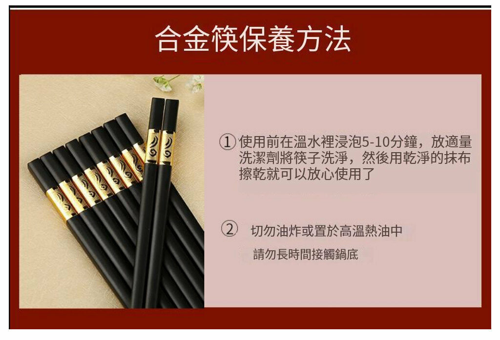 爆款【10雙裝】防滑合金筷子【(鋁頭)合金筷】