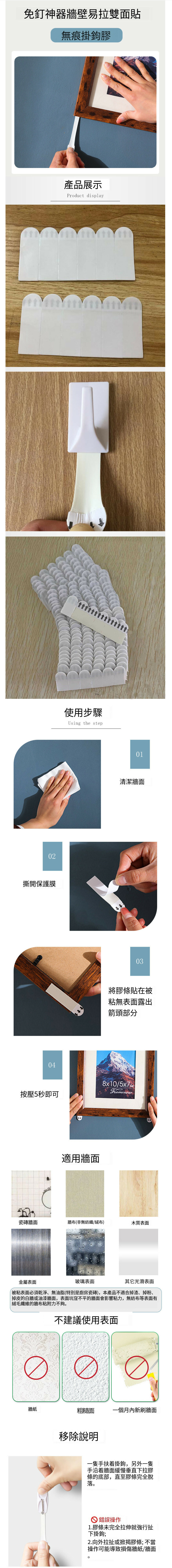 新款【10個裝】超強無痕雙面貼 牆壁免釘雙面膠貼 高曼替代易拉掛鉤膠條 相框無痕可移貼(M號 1.6*6.9cm )