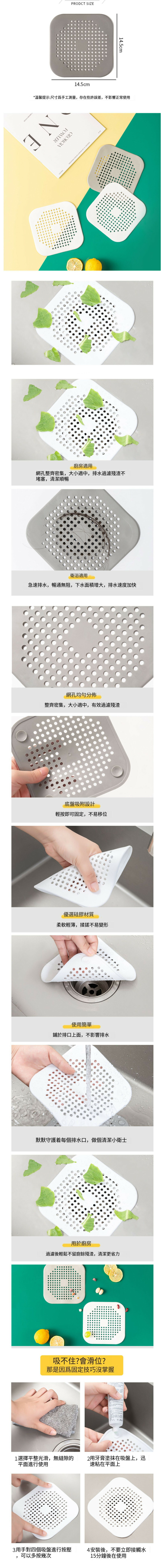 熱賣【1個裝】水槽過濾器 過濾網 防堵隔渣吸盤地漏蓋(灰色)