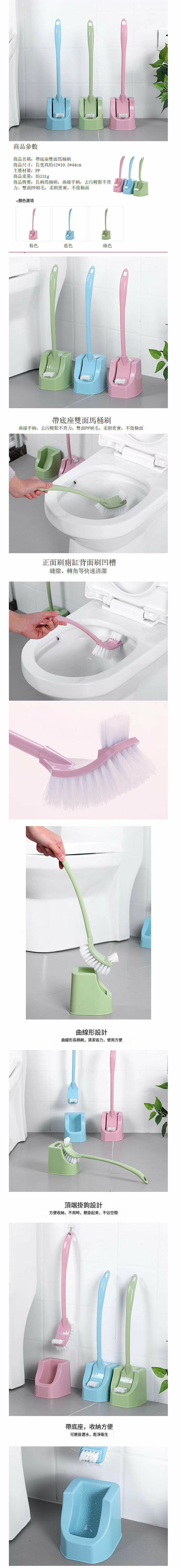 新款【1個】無死角帶底座雙面彎曲馬桶刷 廁所刷 -[粉色]