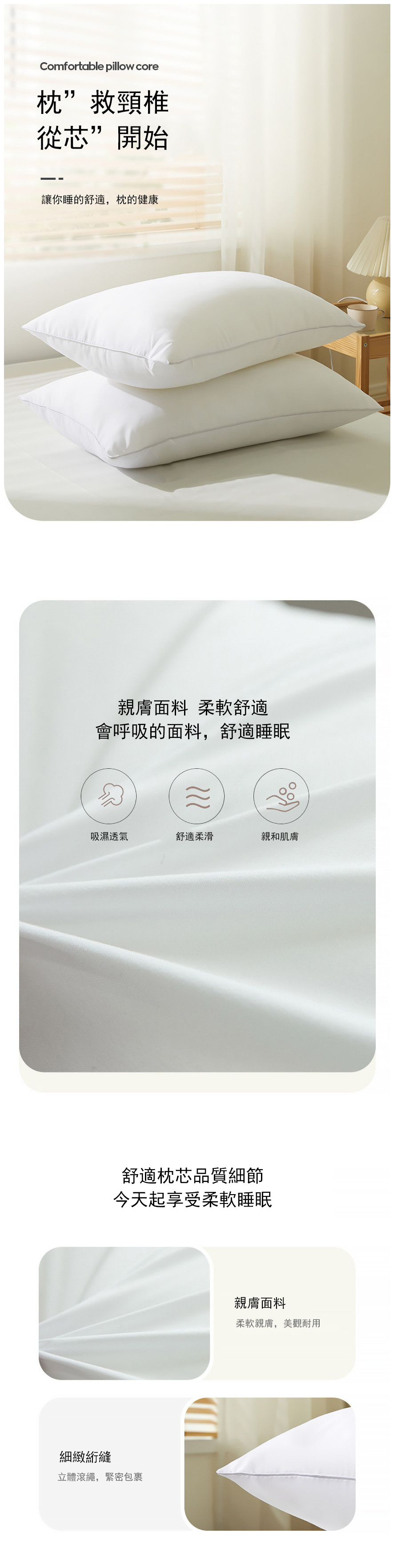 激抵【1個】純白枕頭枕芯(40x60cm低枕款)