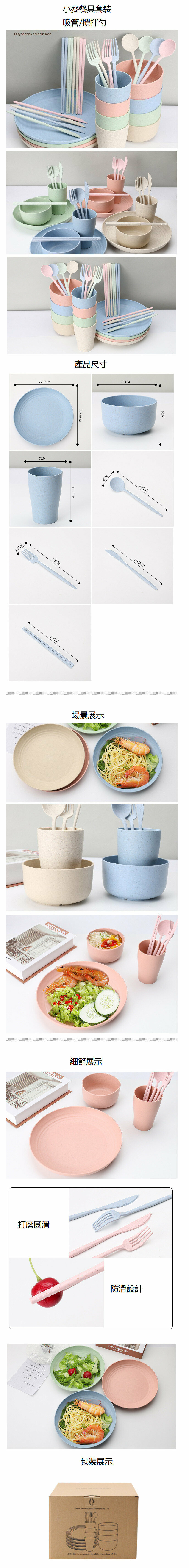 激抵【28件套/混色】小麥秸稈餐具家用碗杯盤便攜刀叉勺筷套裝沙