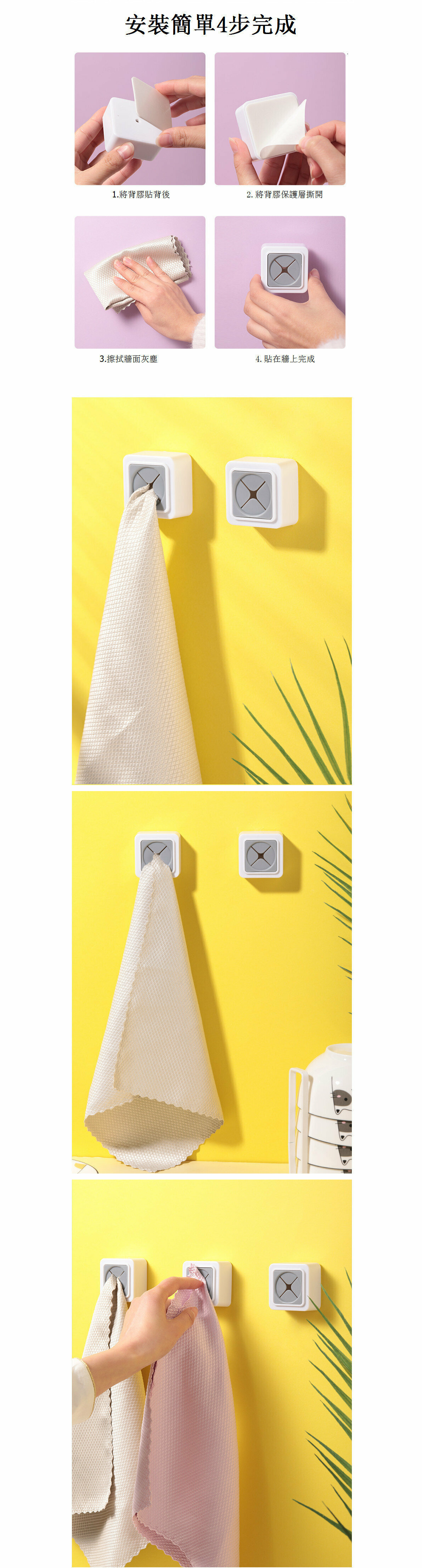 爆款【2個裝】粘貼式抹布 手套夾無鉤款(方型款)(白灰色)(尺碼5cm*2.5cm*5cm)