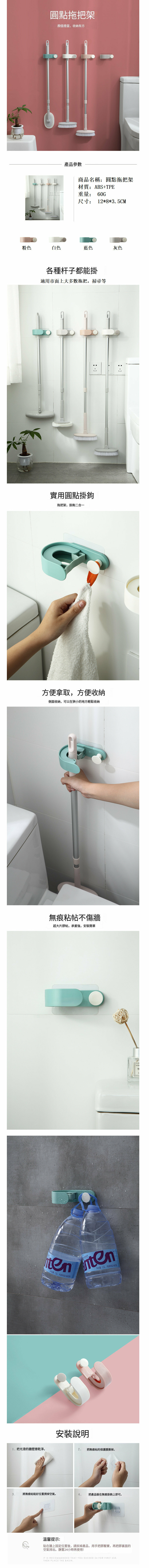 熱賣【2個裝】北歐風自粘式浴室掛鈎 免釘地拖掛架掃帚架 掃帚夾 【灰色】