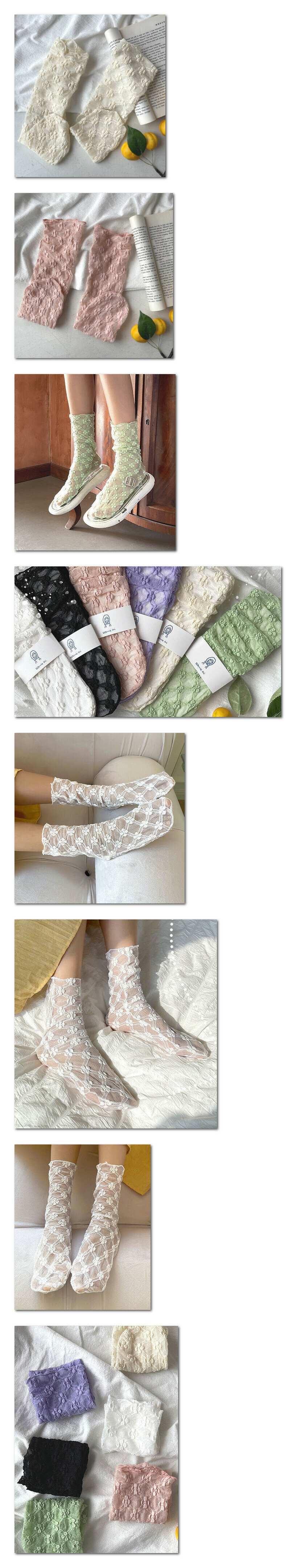 新款【3對裝】泡泡蕾絲堆堆中筒打底女襪(黑色)