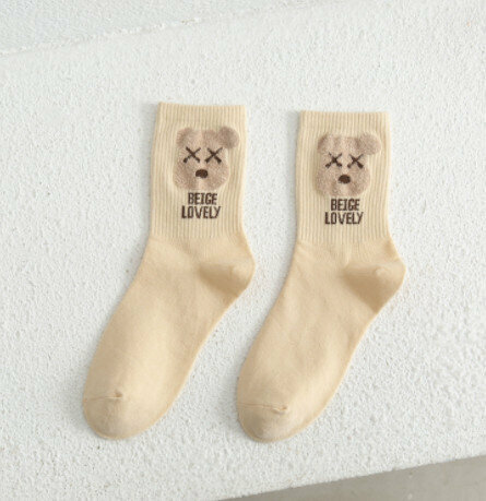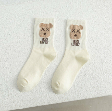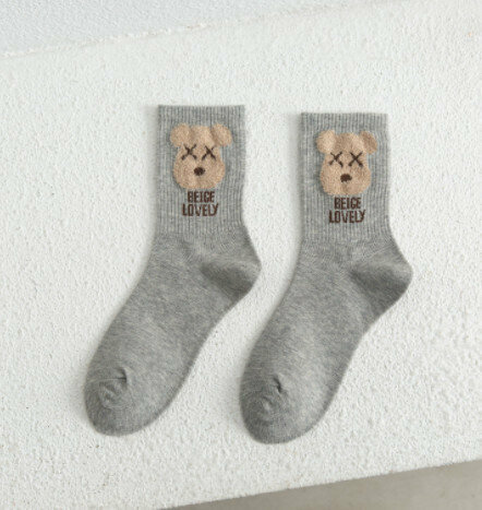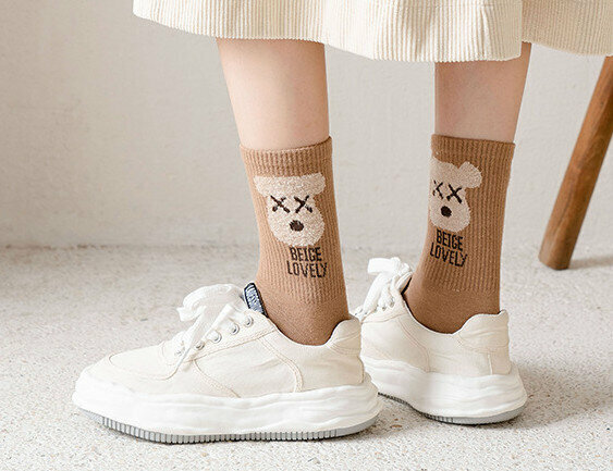 熱推【3對裝】卡通熊中筒襪(黑色)