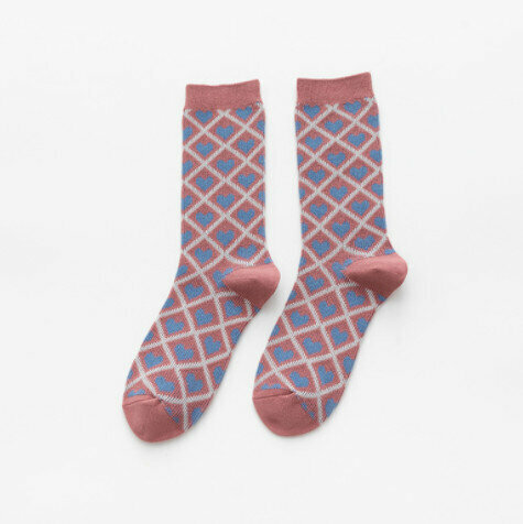 熱推【3對裝】中筒襪秋冬復古菱格英倫襪(粉色小菱格)
