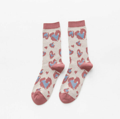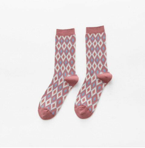 激抵【3對裝】中筒襪秋冬復古菱格英倫襪(粉色豹紋)