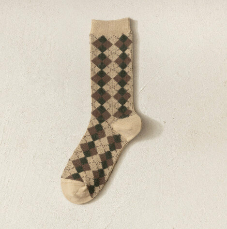 熱賣【3對裝】中筒襪秋冬復古菱格英倫襪(紫色豹紋)