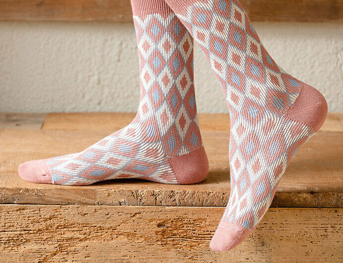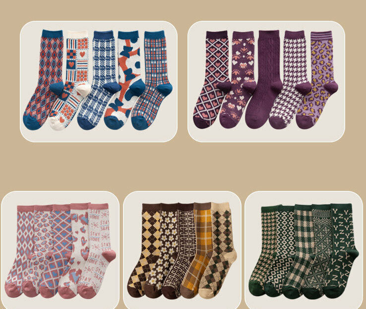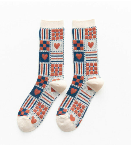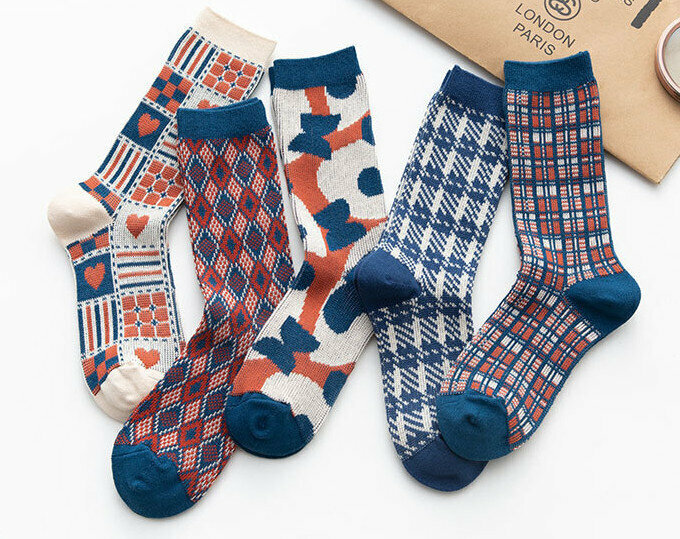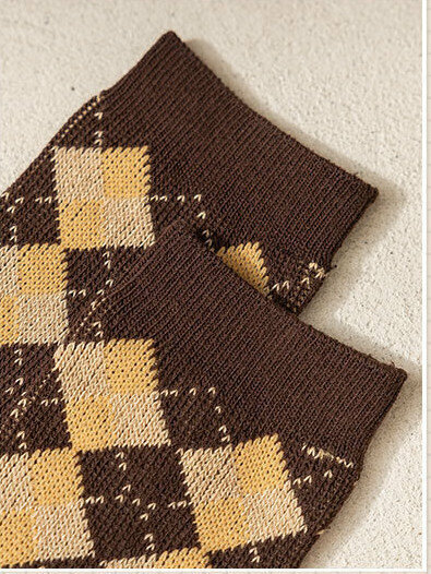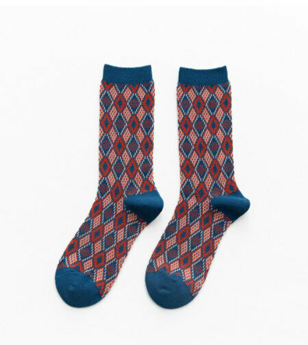 激抵【3對裝】中筒襪秋冬復古菱格英倫襪(藍色小菱格)