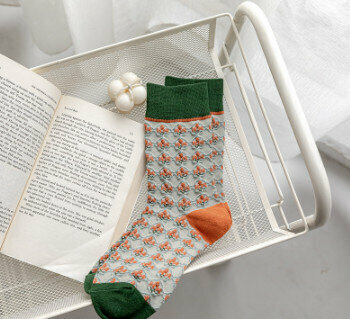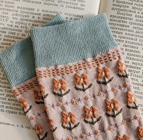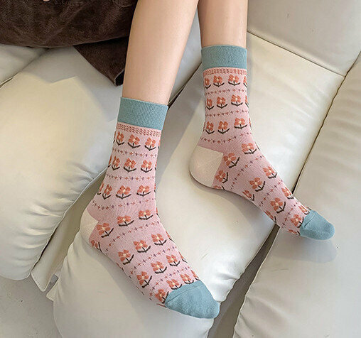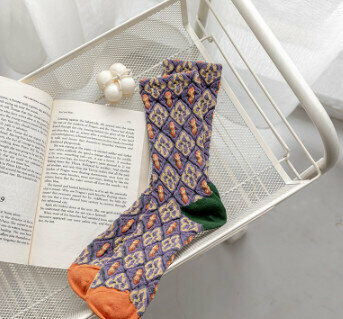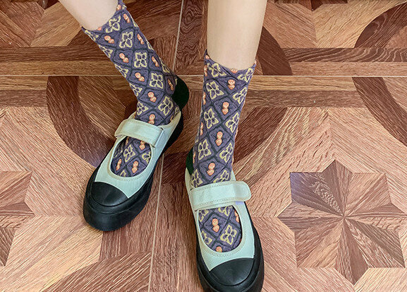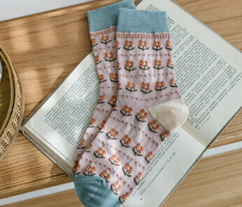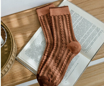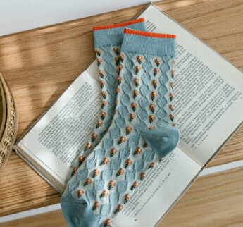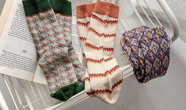熱賣【3對裝】復古風立體花紋中筒棉襪(波浪小方塊)
