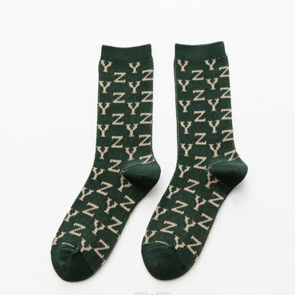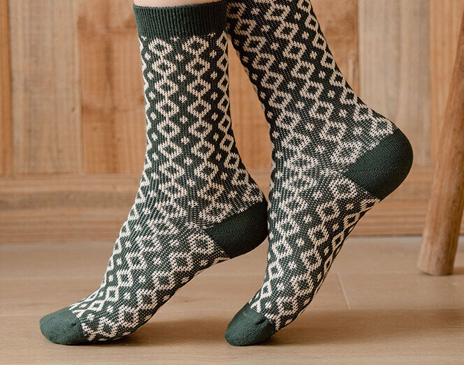 熱推【3對裝】復古中筒襪秋冬精梳棉(綠色小菱格)