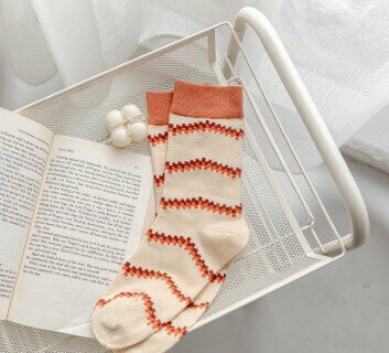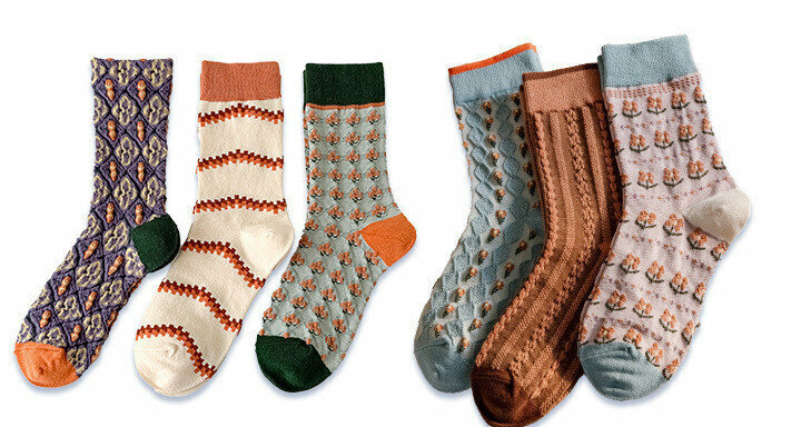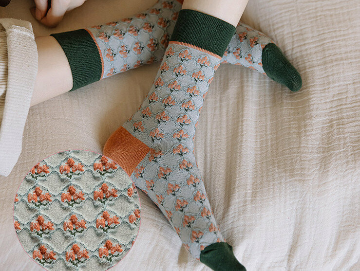 爆款【3對裝】復古風立體花紋中筒棉襪(焦糖)