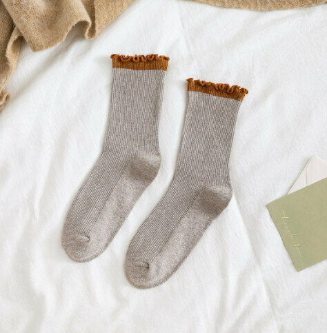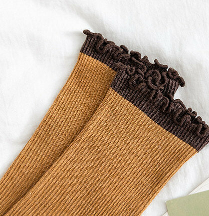 熱推【3對裝】女精梳棉花邊中筒襪純色(紫色)
