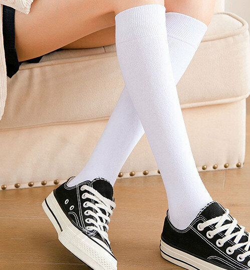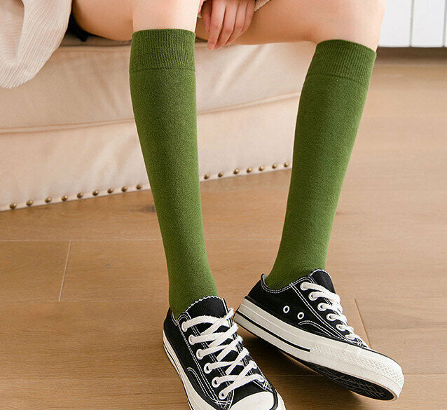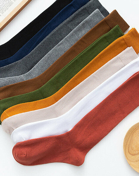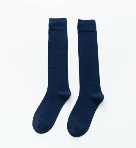 激抵【3對裝】女精梳棉純色高筒襪(藏青色)