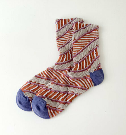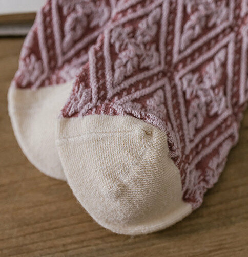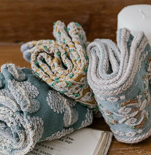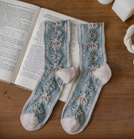 熱賣【3對裝】女士復古潮流風中筒襪(淺綠蝴蝶花)