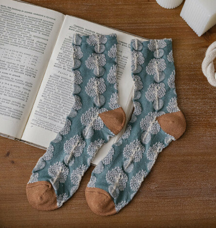 新款【3對裝】女士復古潮流風中筒襪(淺綠豎紋)