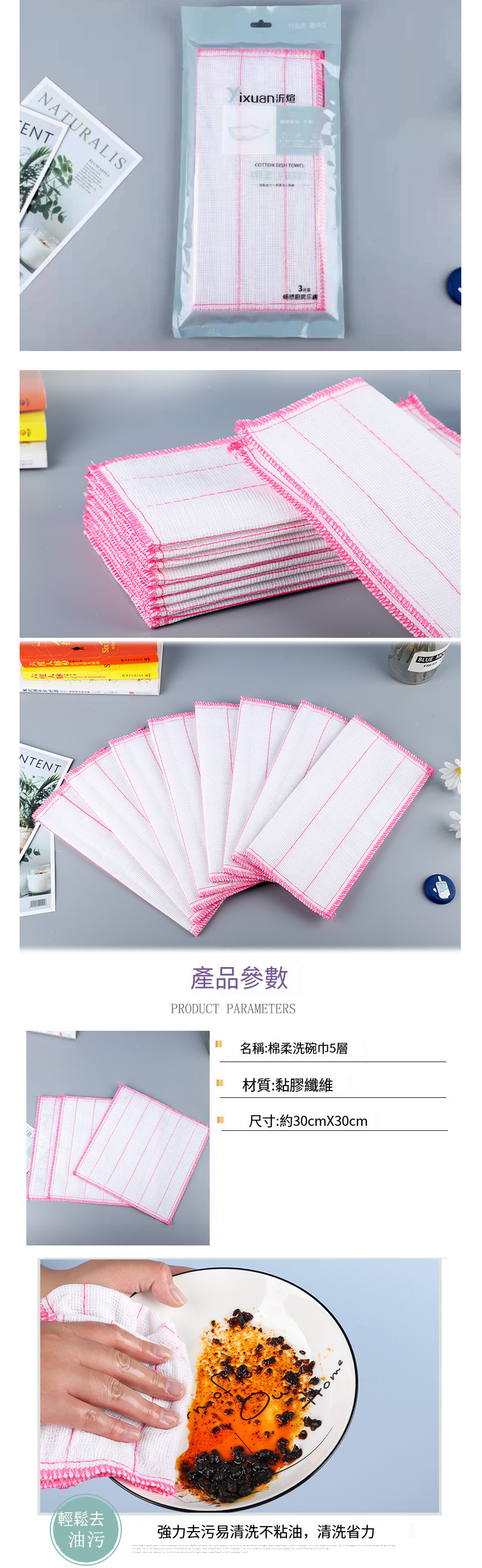 爆款【3片裝/1包】多用棉紗抹布5層洗碗布