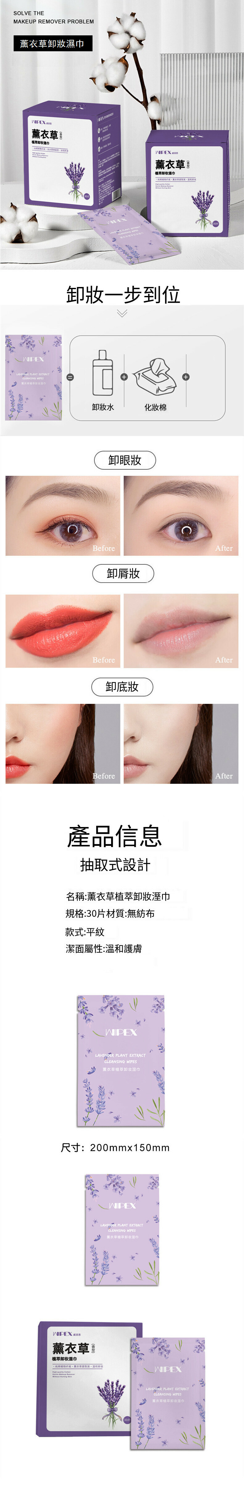 熱賣【30片裝】薰衣草植萃卸妝濕巾