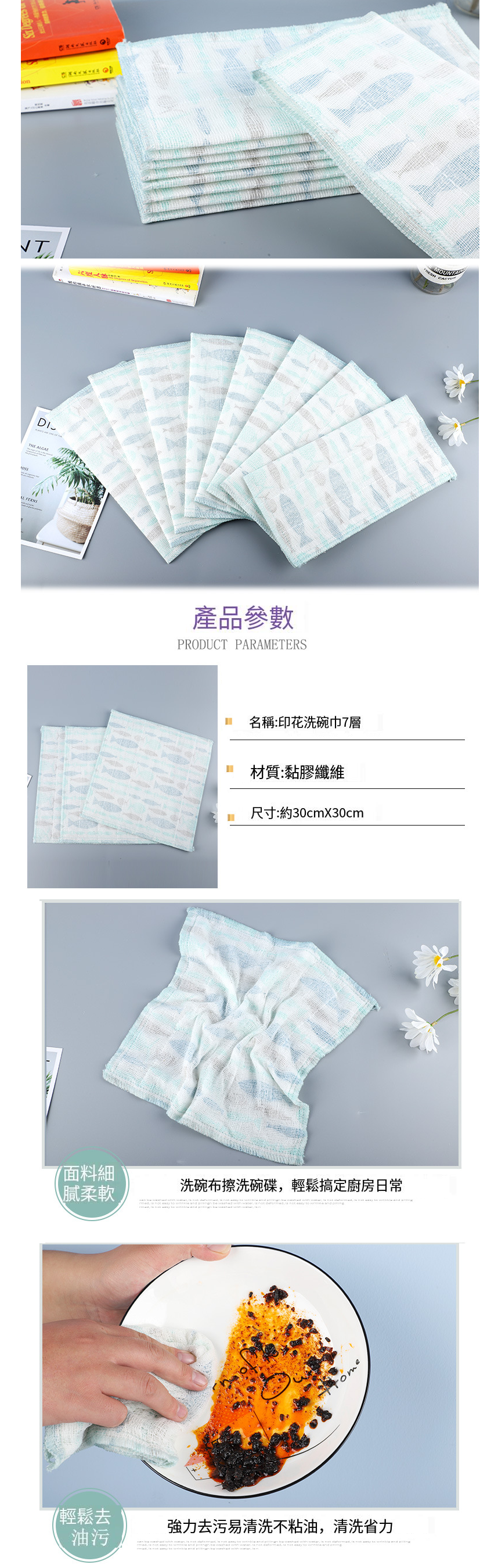 爆款【3片裝/1包】7層印花洗碗巾清潔抹布