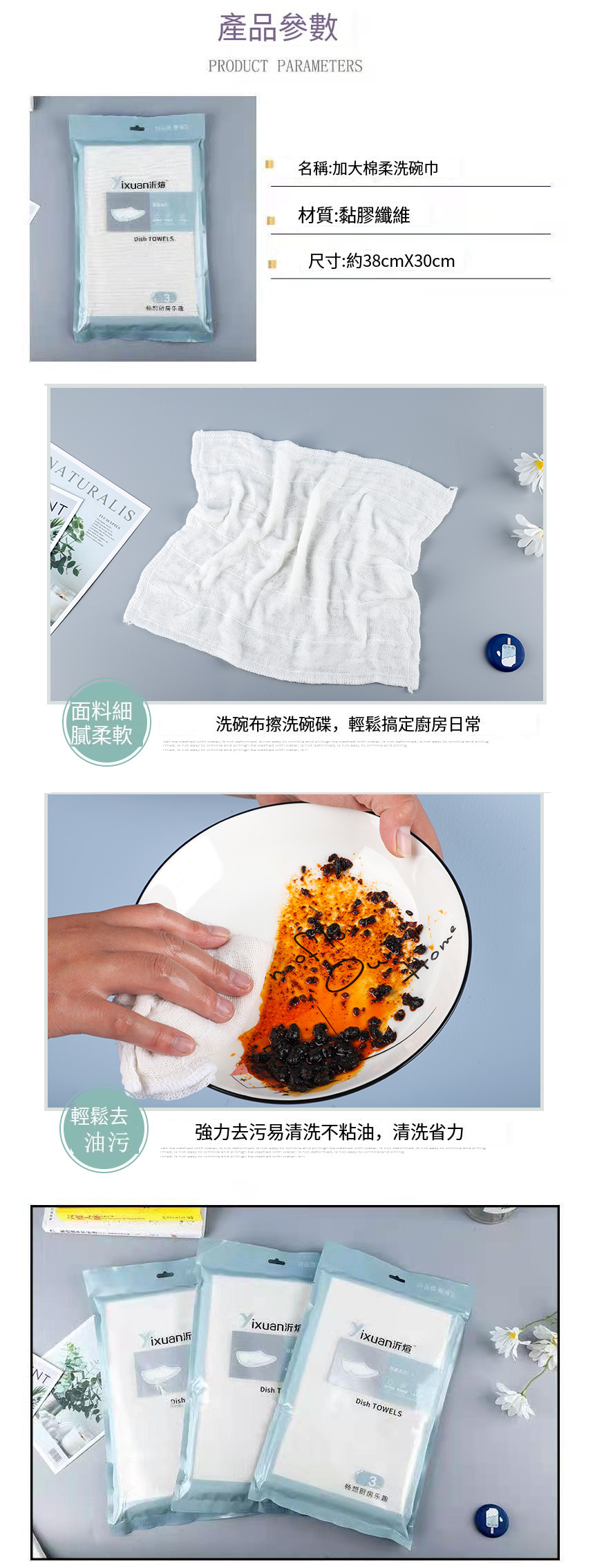 爆款【3片裝/1包】8層綿柔洗碗抹布(38*30cm)