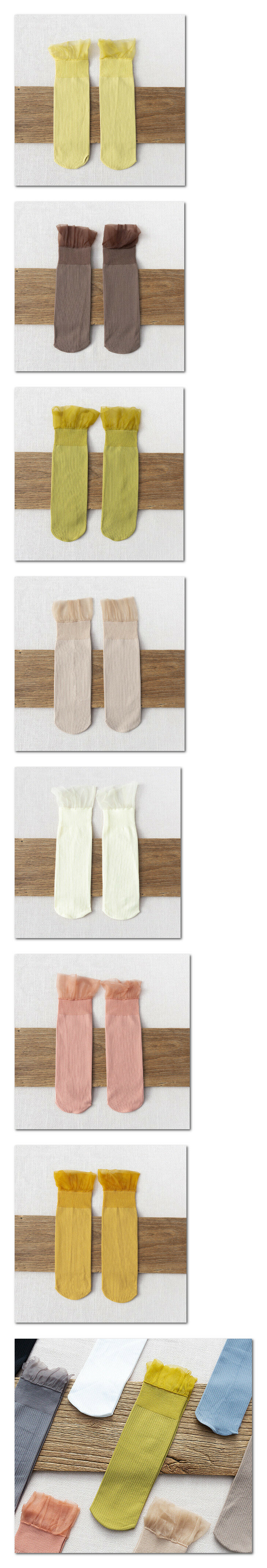 新款【4對裝】夏季蕾絲花邊中筒女襪(米咖色)