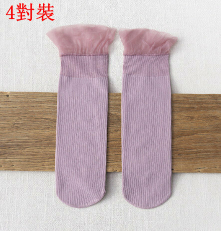 熱賣【4對裝】夏季蕾絲花邊中筒女襪(紫色)