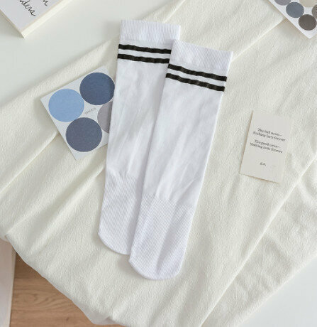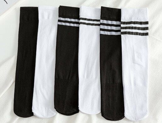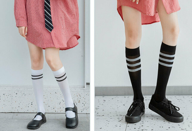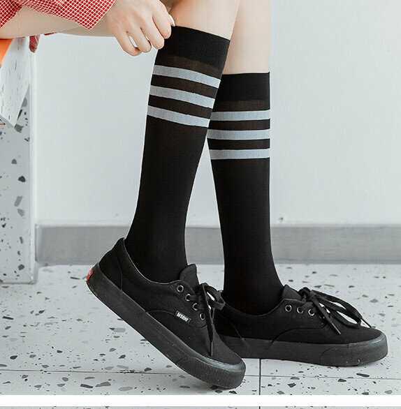 熱推【4對裝】夏季女天鵝絨高筒襪(黑色條紋)