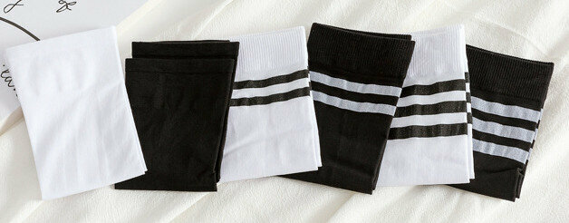 激抵【4對裝】夏季女天鵝絨高筒襪(白色條紋)