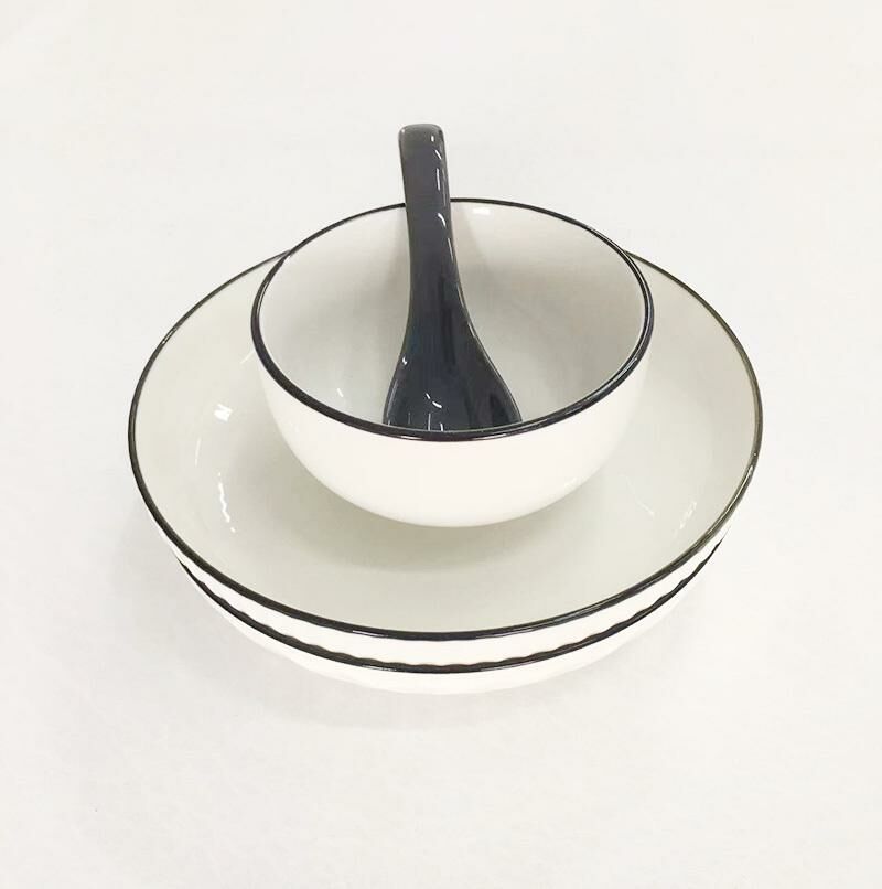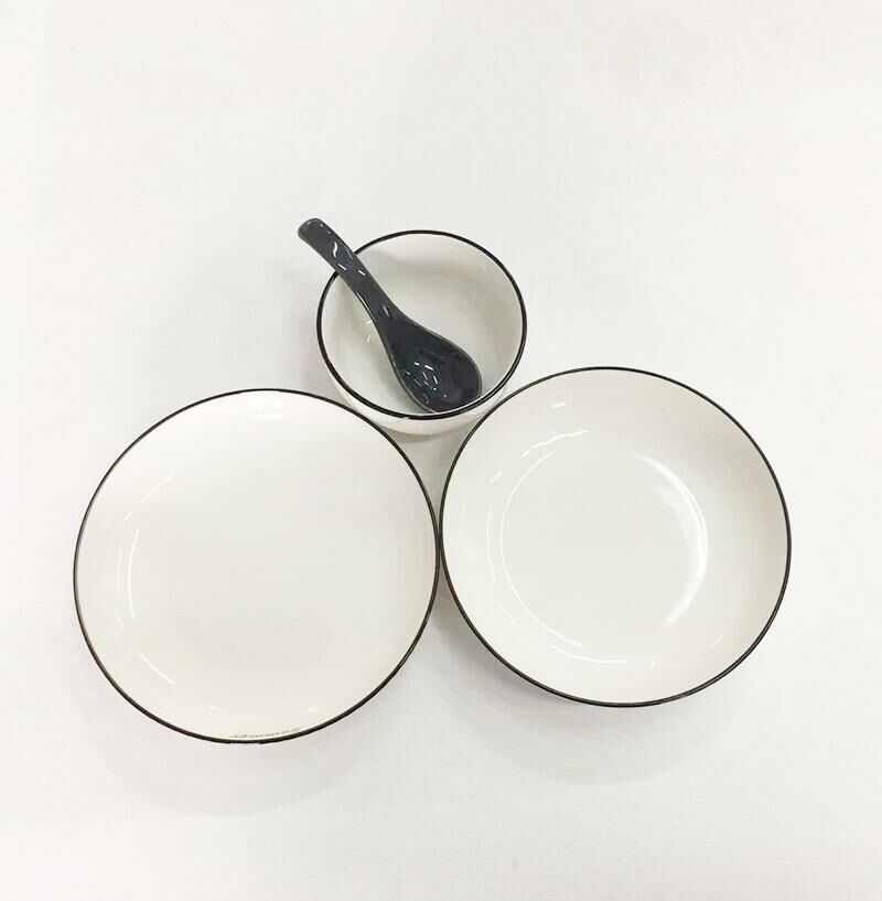 新款【4件】圓形陶瓷碟 家用餐碟 陶瓷盤 陶瓷飯碗(盤寬約18.5 飯碗寬約11cm 勺子長度13.5cm)