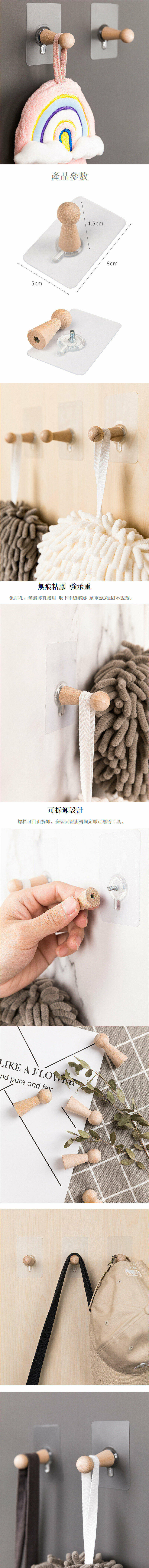 新款【4個】日式簡約原木無痕掛鉤 衣物掛鉤 浴室/廚房强力置物掛鉤
