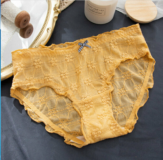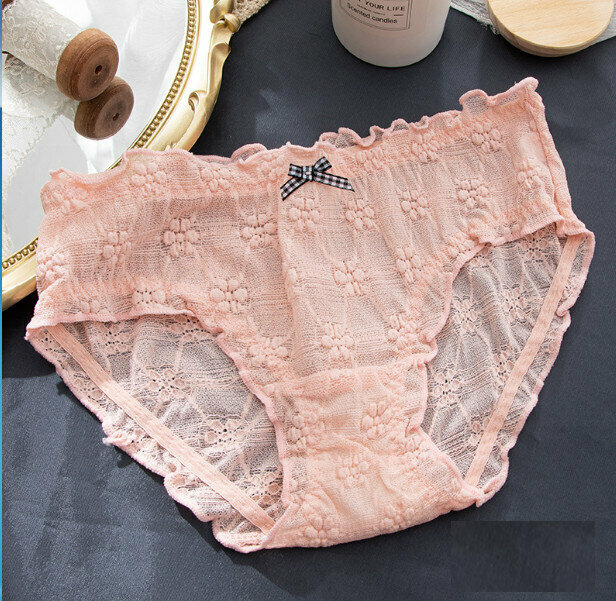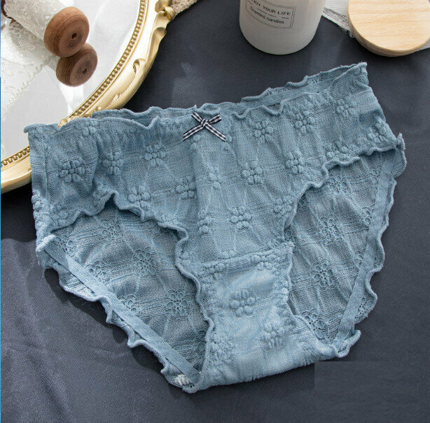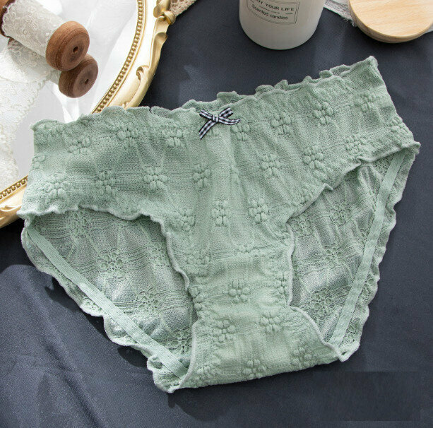 激抵【5條裝】中腰 純棉襠花朵蕾絲三角褲 (M-L碼)【顏色隨機 下單後聯絡客服確認發貨尺碼】