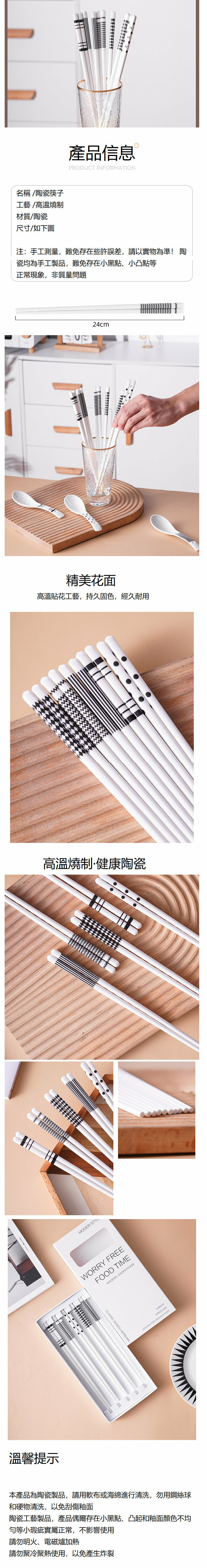 新款【5雙/混色裝】陶瓷筷子簡約 不易發黴不變形 耐高溫