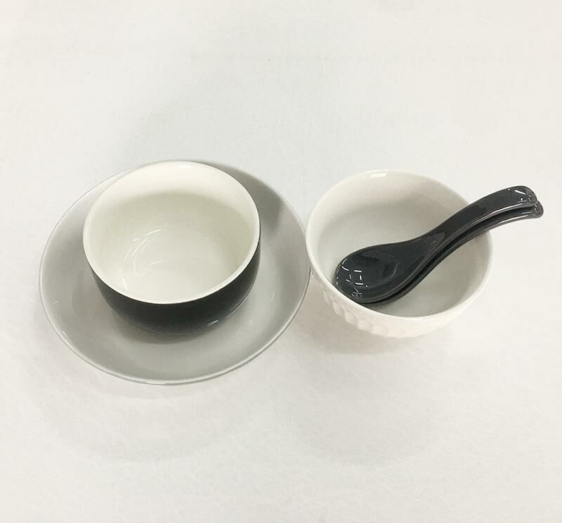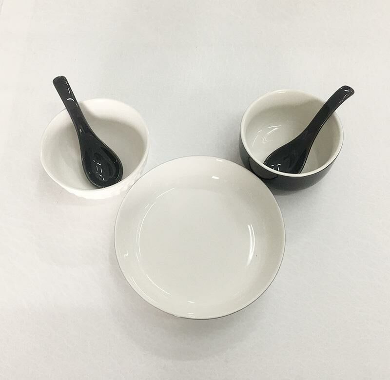 新款【5件】圓形陶瓷碟 家用餐碟 陶瓷盤 陶瓷飯碗(盤寬約17.5cm 飯碗寬約11cm 勺子長度約13.5cm)