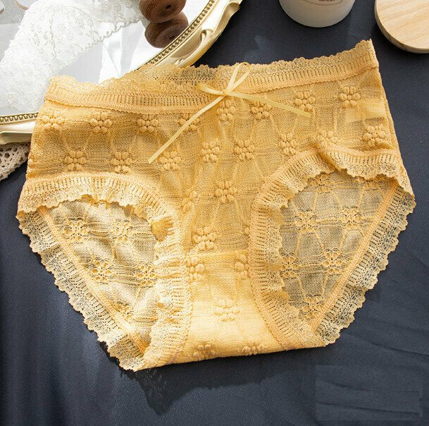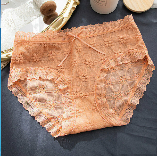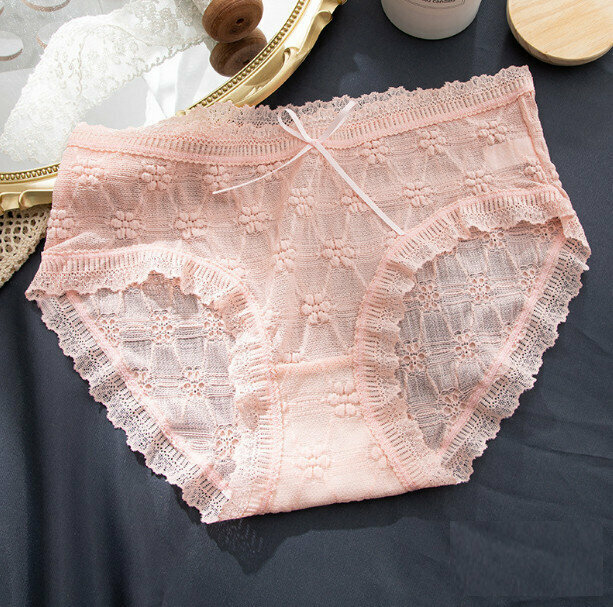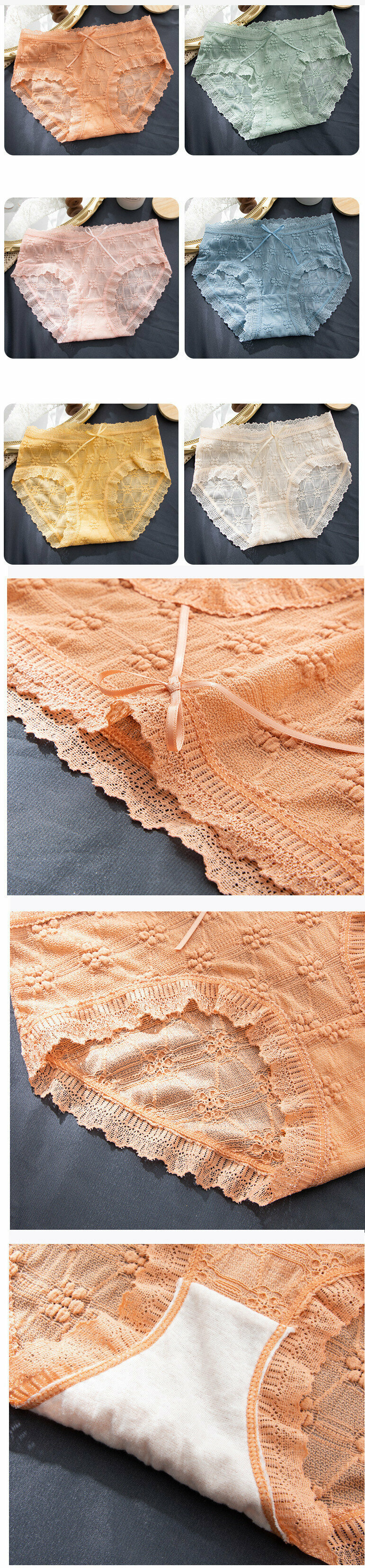 新款【5條裝】女士中腰純棉襠薄款蕾絲三角短褲(M-XL碼)【顏色隨機下單後聯絡客服確認發貨尺碼 】