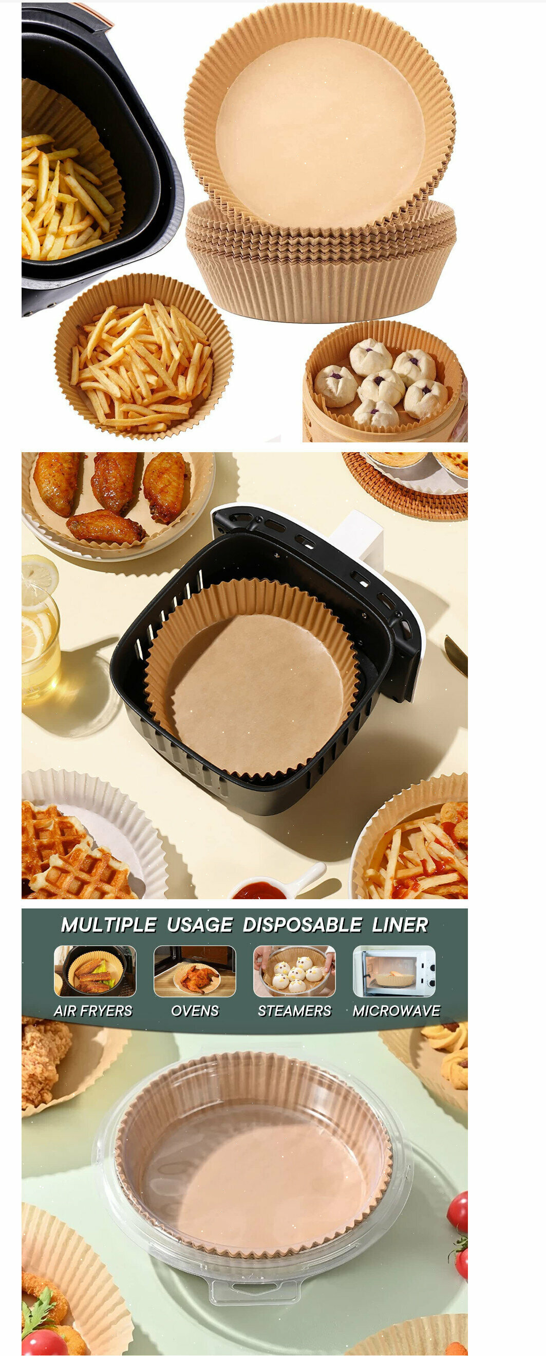 新款【50張】炸鍋紙墊盤 隔油紙 氣炸鍋吸油紙 食物紙 炸薯條紙 不粘油 烘焙紙 牛油紙 氣炸鍋隔油紙 防漏油墊【規格圓形16CM】