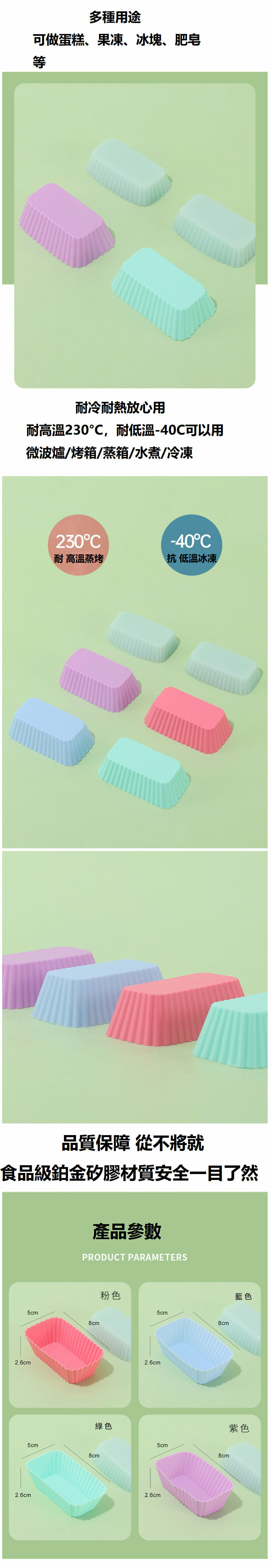熱賣【8件裝】【顏色隨機】長方型矽膠蛋糕模/ 馬芬模/ 烘焙用品/ 布丁模/ 果凍模/ 手工皂模