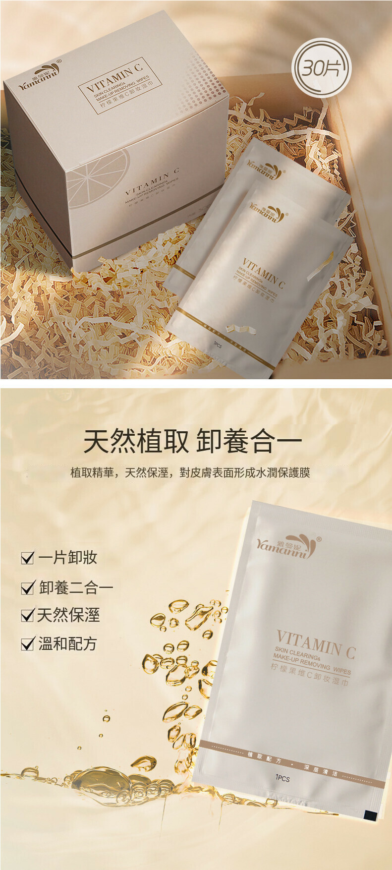 激抵【30片盒裝】果維C加大加厚卸妝濕巾紙